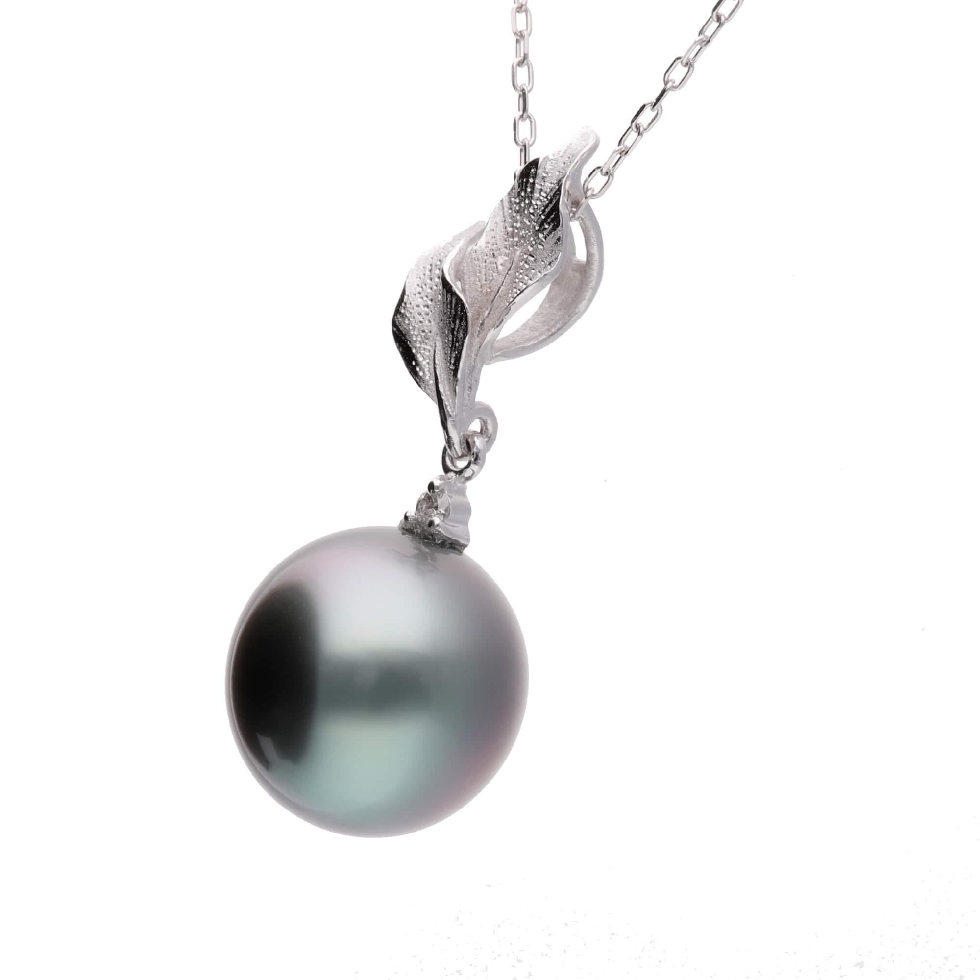 - 【常盤木】ブラックパール(タヒチ 黒蝶真珠) 10mm セミラウンド ダイヤモンド K18 ホワイトゴールド ペンダントトップ