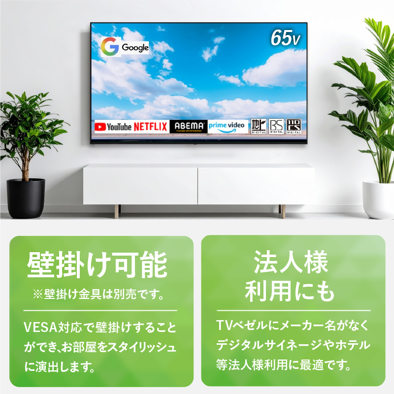 【ふるさと納税】 テレビ 65型 Google TV 液晶テレビ AP655GL セカンドテレビ 子ども用 寝室用 ハイビジョン 壁掛け可能 VESA対応 家電 電化製品 65インチ 法人用にもおすすめ 会議室 ホテル 学校 病院 デジタルサイネージ 地デジ BS CS 送料無料 山梨県上野原市