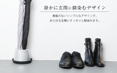 コンパクト 傘立て (ロゴあり) 受皿 (グレー/テラコッタ/ブラウン/ブラック/ネイビー) 傘 カサ 傘立 アルミ製 かさたて かさ立て 傘たて ロゴ 受け皿 シンプル 倒れにくい カフェ サロン 高級感 安定感 業務用 家庭用 静岡 菊川市