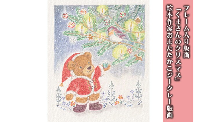 - フレーム入り版画「くまさんのクリスマス」 絵本作家おまたたかこジークレー版画 【インテリア・フレーム入り・額縁・壁掛け用の紐・ジークレー・版画】