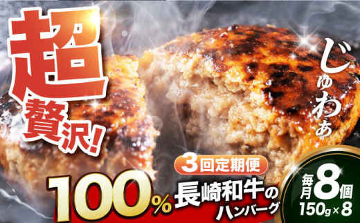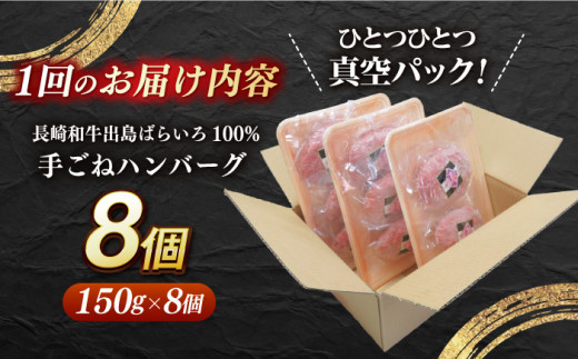 ハンバーグ【全3回定期便】【長崎和牛100%使用】A5ランク 出島ばらいろ ハンバーグ 8個(150g/個)長与町/岩永ホルモン [EAX031] 国産ハンバーグ 牛肉100% ハンバーグ はんばーぐ A5 冷凍調理済み はんばーぐ 定期便 ていきびん