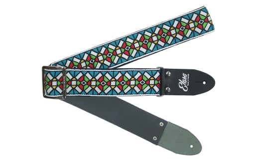 - 【ギターストラップ】 Elara Straps Stained Glass Pacific Blue(BK) 郡上市 レザー 真鍮バックル ウルトラスエード プロ仕様 エレキ アコギ ベース Ksound 小林楽器店