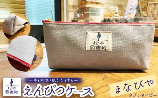 - 松本図書鞄 えんぴつケース(まなびや/タブネイビー)女の子 | 図書袋 図書鞄 鉛筆 えんぴつ ペンケース コンパクト 刺繍 布 学校 小学生 本 図書館 長野県 松本市 ふるさと納税