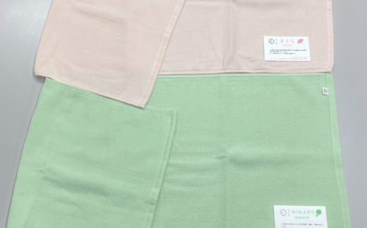 【のこり染】フェイスタオル 2色セット さくら×ほうれんそう