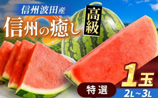 【先行受付:2026年7月発送】信州波田産 贈答用 高級スイカ! 信州の癒し 【特選】 2L~3Lサイズ 1玉|ふるさと納税 長野県 信州 松本 果物 フルーツ すいか スイカ 西瓜 新鮮 大きい 特別 贈答 季節限定 甘い くだもの ふるーつ