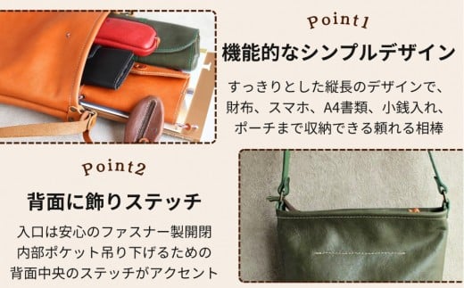 カッサ | 男女兼用の縦長ショルダーバッグ 【チョコ】 博多革工房 Japlish | ジャプリッシュ