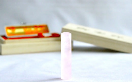 - 天然ローズクォーツ印鑑15mm開運吉相印 甲州印伝ケース・桐箱付 ローズクォーツ ハンコ 判子 印鑑 実印 オーダーメイド 山梨県 身延町
