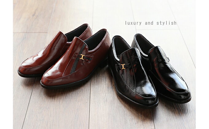 - 【ふるさと納税】カンガルー革 ビジネスシューズ 紳士靴 Uモカ スリッポン 5cmアップ 4E ワイド No.635 ブラウン 雑貨 日用品 シークレットシューズ