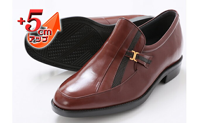 【ふるさと納税】カンガルー革 ビジネスシューズ 紳士靴 Uモカ スリッポン 5cmアップ 4E ワイド No.635 ブラウン 雑貨 日用品 シークレットシューズ