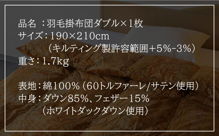 - 【ニューゴールドラベル】羽毛布団 【ダブル】 ホワイトダックダウン85%使用 長崎県壱岐産【壱岐工芸】 [JCD014] 羽毛掛け布団 ふとん 本掛け 布団 16万 200000 200000円 20万円