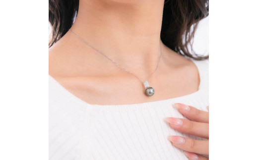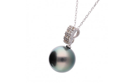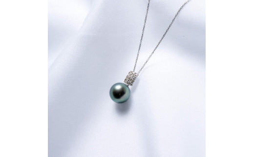 - 【月影】ブラックパール(タヒチ 黒蝶真珠) 10mm セミラウンド ダイヤモンド Pt900 プラチナ ペンダントトップ