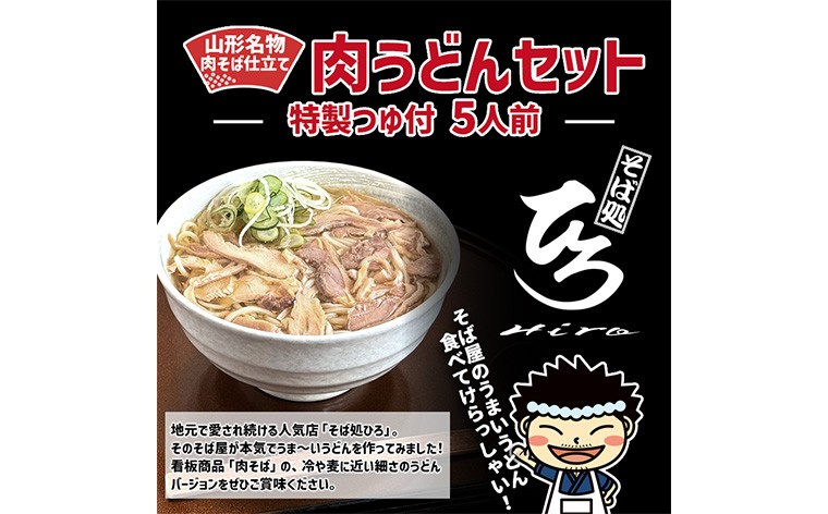- 【そば処ひろ】山形名物肉そば仕立て「肉うどんセット」生麺200g×5(特製つゆ5人前付) FZ25-325