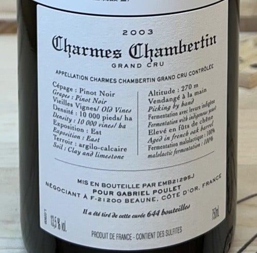 No.90 新冠 トンネル 熟成 ワイン フランス ブルゴーニュ ジュヴレ シャンベルタン村 産 赤 ワイン 2003