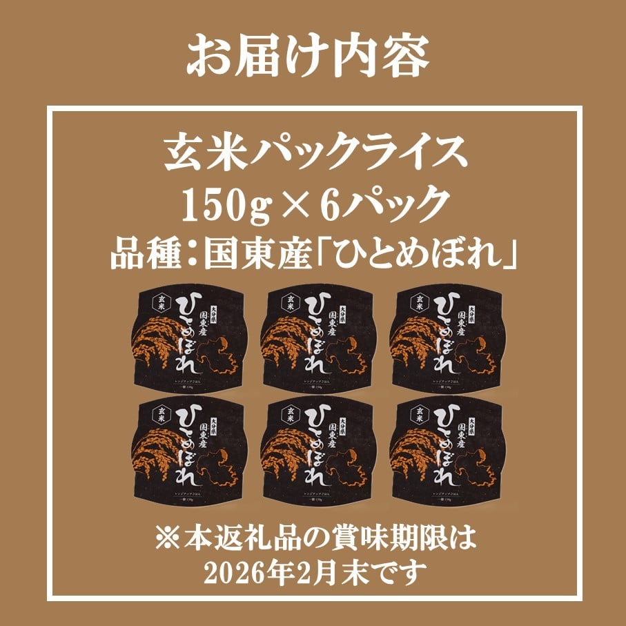 【訳あり】食物繊維たっぷり! 松原ファームの玄米パックライス ひとめぼれ 150g×6P レンジアップご飯 レトルトご飯 パックご飯_2648R