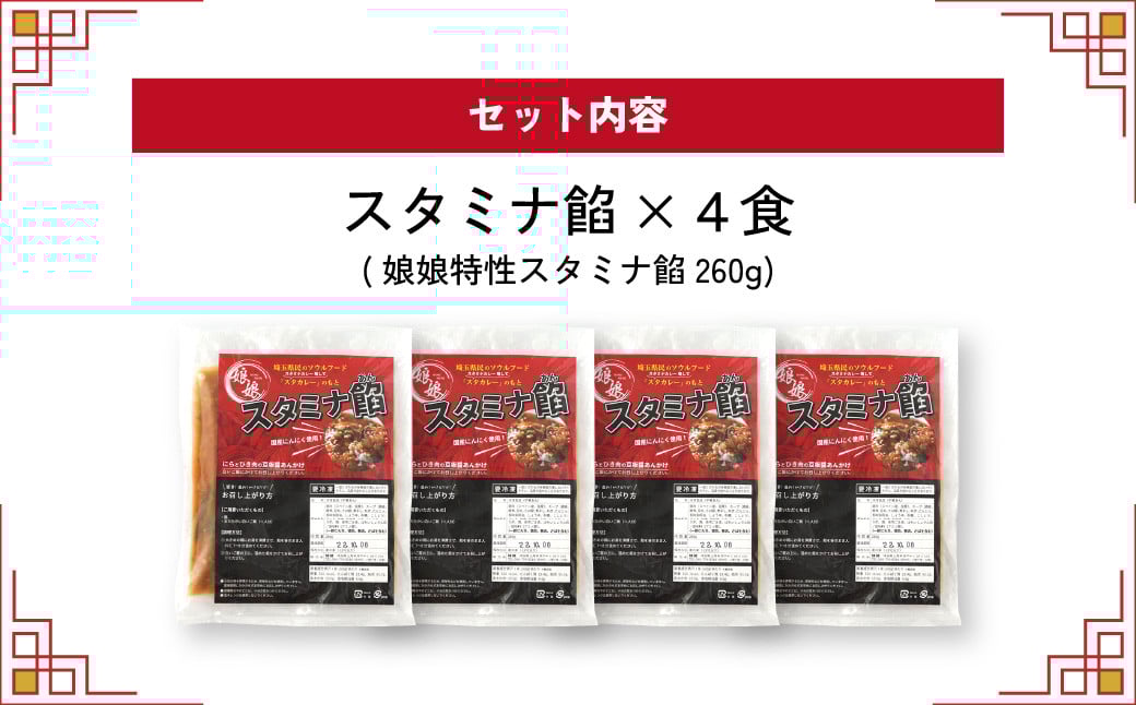 - 娘娘 スタミナ餡 4食セット | 餡掛け スタカレー ソウルフード お店の味 動物系 魚介系 ダブルスープ 昼食 ランチ 夕飯 夜食 中華 冷凍 冷凍総菜 時短メシ お取り寄せ 小分け 国産 おかず 惣菜 簡単調理 町中華 埼玉県 上尾市