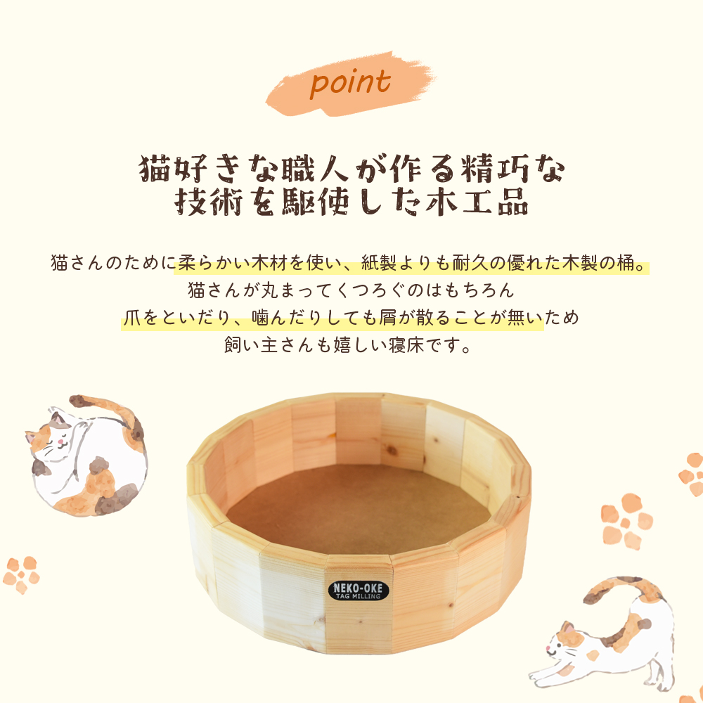 - 【数量限定】<猫さんへ贈る猫桶> ネコグッズ ねこ cat キャット 猫ベッド ハウス 寝床 丸型 くつろぎ まるまる 木製 ウッド 木のぬくもり ナチュラル 猫好き職人の手作り こだわり【MI102-yk】【みまたんよかもん協同組合】