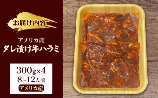 アメリカ産タレ漬け牛ハラミ 8~12人前 300g×4 牛肉 焼肉 焼き肉 アウトドア BBQ
