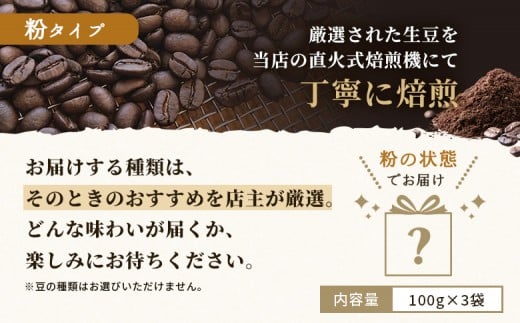 【自家焙煎珈琲工房 飛行島】自家焙煎 珈琲(粉) 300g (100g×3袋) | 自家焙煎 珈琲 コーヒー コーヒー粉 セット 飛行島 厳選 生豆 直火焙煎 焙煎 おすすめ 味わい 珈琲店 工房 詰め合わせ お取り寄せ 宮城県 白石市 白石【47004】