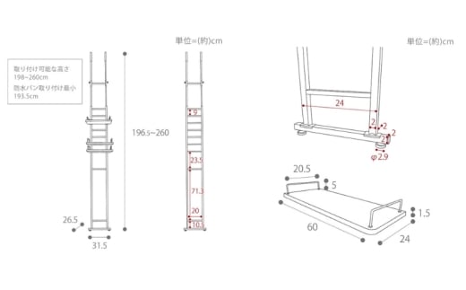 - 突っ張り式ランドリーラック Echo(エコー) スリムタイプ アッシュ