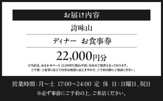 【誇味山】《ディナー》22,000円分お食事券(ぐるなびセレクション)