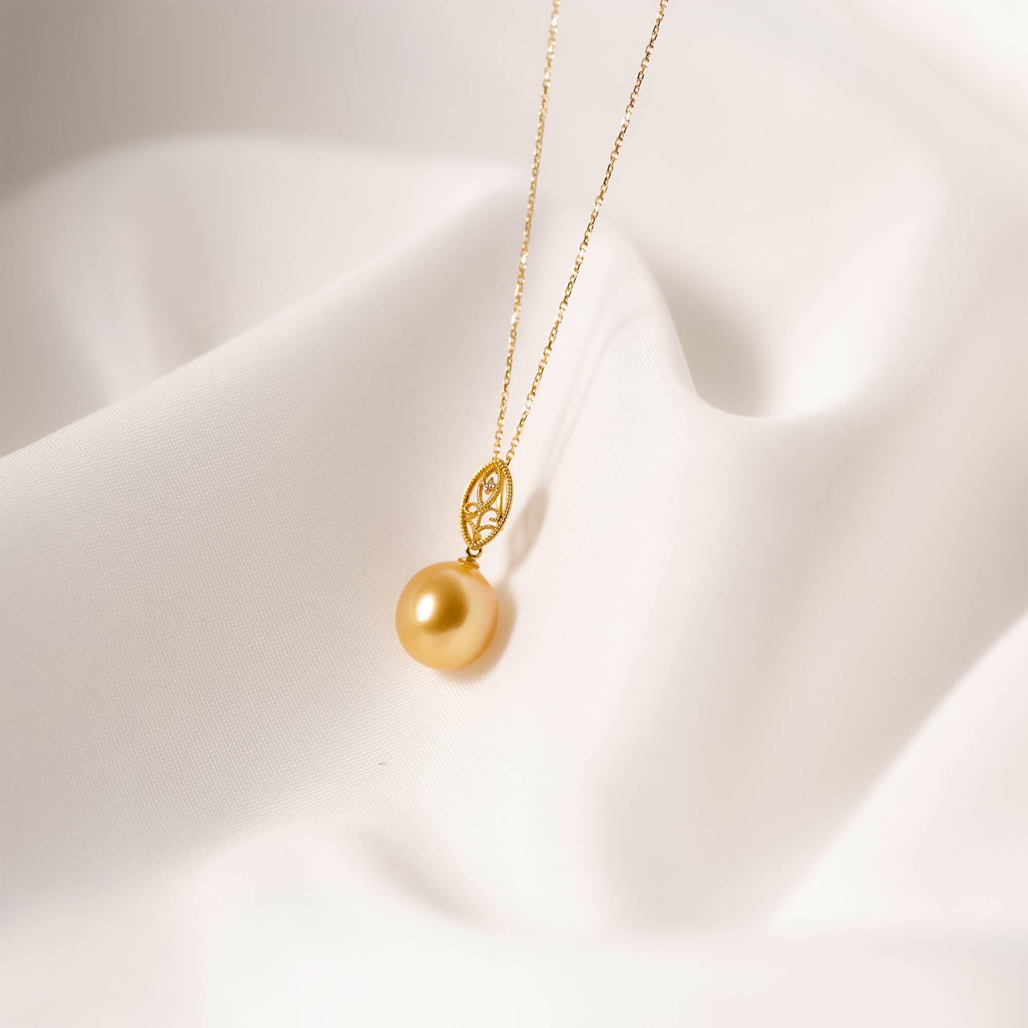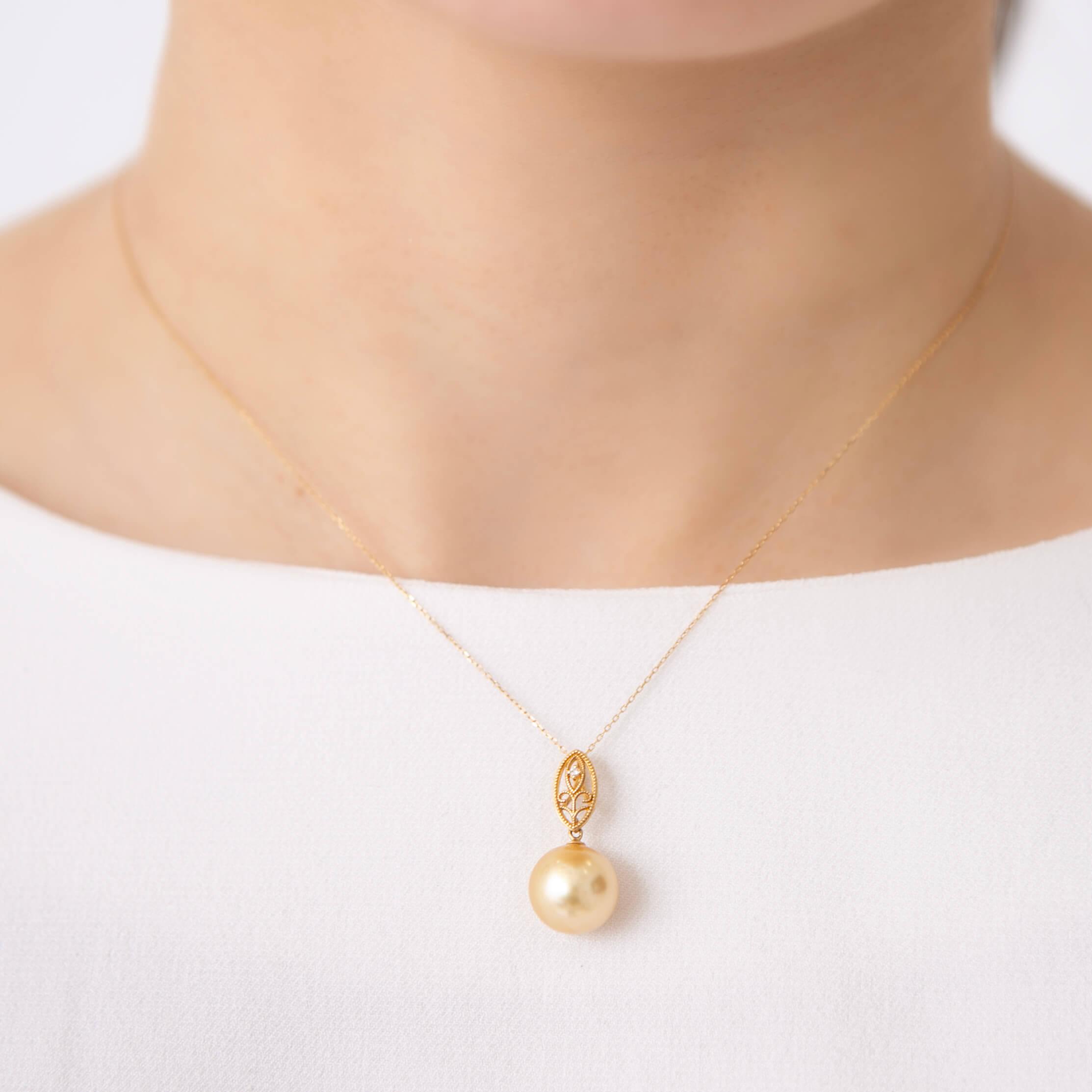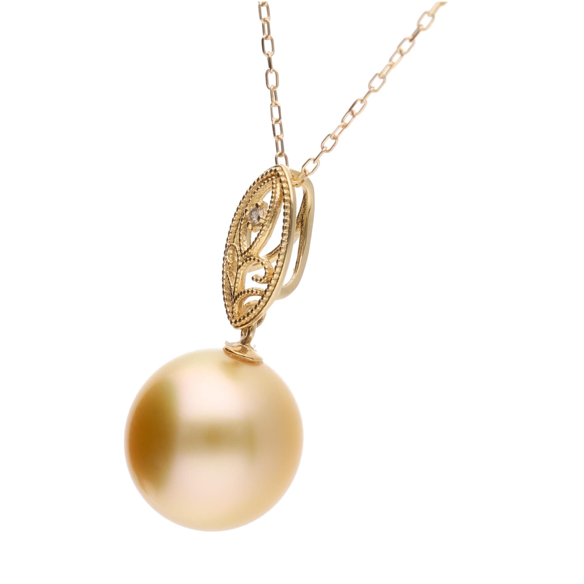 - 【澪標】ゴールデンパール(南洋 白蝶真珠) 10mm セミラウンド ダイヤモンド K18 イエローゴールド ペンダントトップ
