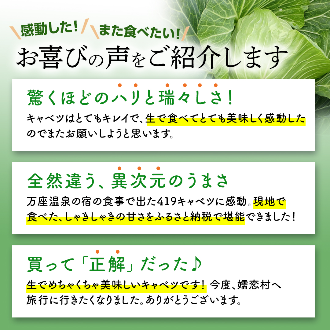 【7月中旬発送開始】訳あり 《 3か月 定期便 》まぼろしの419キャベツ 2玉 3カ月 きゃべつ 嬬恋村産キャベツ 羽生田売店 幻のキャベツ419 産地直送 期間限定 先行予約 人気 朝採り 通販 お取り寄せ 関東 群馬 出荷時期限定 先行予約 [AL015tu]