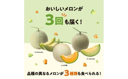 - ≪3回定期便≫ メロン好きに贈る メロンづくしの定期便2026(1) 6月下旬~7月上旬 アンデスメロン 2玉 7月中旬~7月下旬 しっかり娘 赤肉メロン 2玉 8月中旬~10月中旬 アールスメロン 2玉 計3回 山形県酒田産 頒布会 食べ比べ JAそでうら SE0503