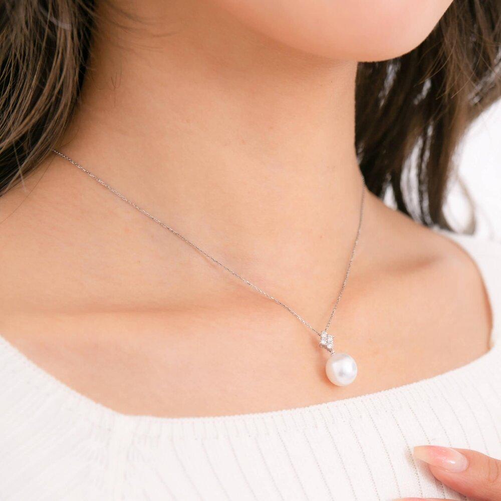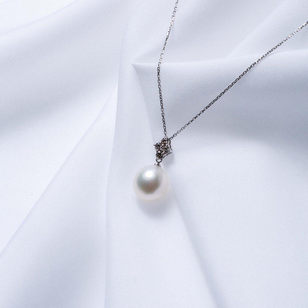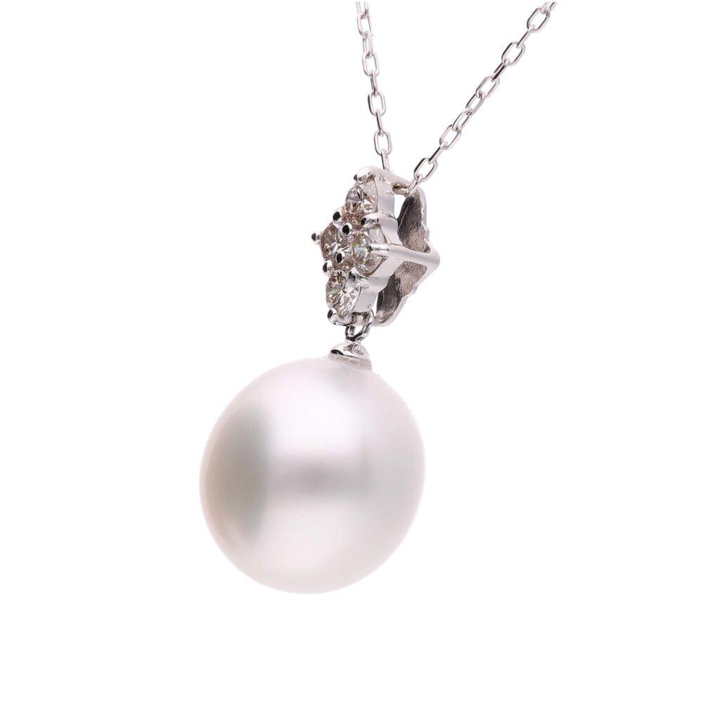 - 【星彩】シロチョウパール(南洋 白蝶真珠) 10mm ショートオーバル ダイヤモンド K18 ホワイトゴールド ペンダントトップ