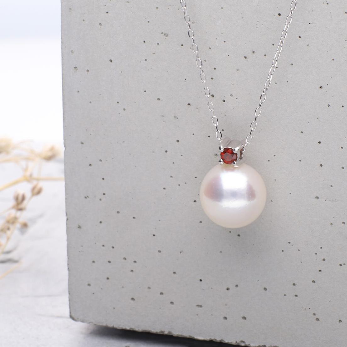 - 1月 誕生石 ガーネット 無調色 アコヤ真珠(日本) 8.0mm ラウンド Pt900 プラチナ ペンダント ネックレス(チェーン付き)
