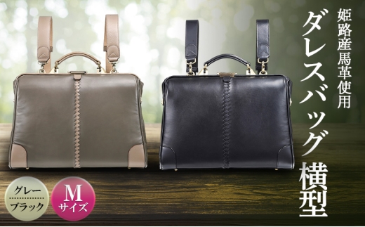 [№5258-6336]姫路産馬革使用 ダレスバッグ 横型 Mサイズ グレー | バック カバン 鞄 ファッション 小物