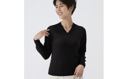 - 【Mサイズ】日本製 カシミヤ100% レディース Vネック ブラック S~Lサイズ