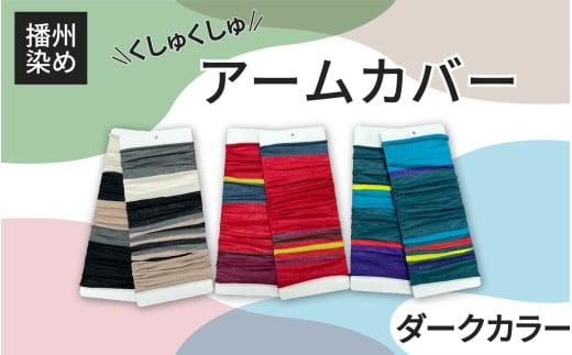 播州染め くしゅくしゅハンドカバー ダークカラー系(フォレスト)/ ファッション 小物 オリジナル 自社 糸染め 編みたて プレゼント 配色 アクセント