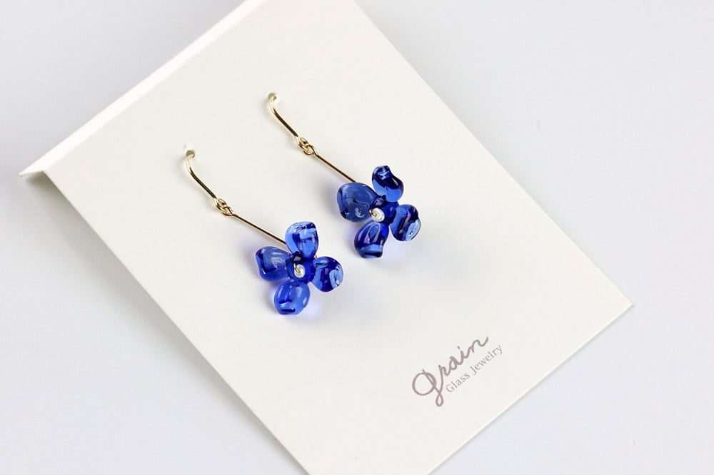 - flowerピアス 【インセントブルー】ガラスジュエリー Glass Jewelry grain アクセサリー 秋田