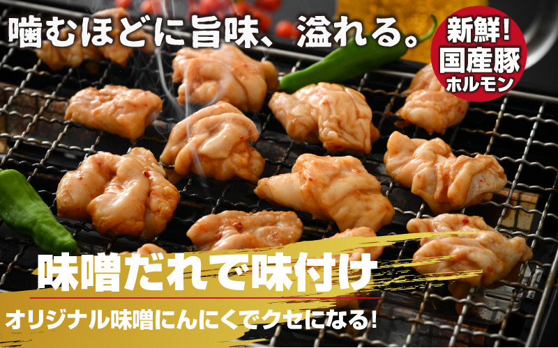 【ふるさと納税】豚 ホルモン タレ漬け 500g×2パック 計1kg 肉厚 美味しい 直腸 甘め 味噌ダレ 豚肉 こだわりのたれ 味付き 焼くだけ 簡単 ジューシー 旨み 真空パック 小分け 焼き肉 ごはん ごちそうおかず おつまみ お取り寄せ グルメ 宮崎県 延岡市 送料無料