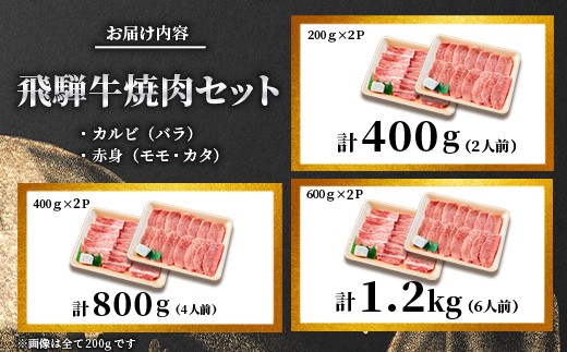 【12/21入金分まで年内発送】 贅沢! 飛騨牛 焼肉セット 400g~1.2kg 2~6人前 牛肉 和牛 肉 焼肉 BBQ 霜降り カルビ 赤身 モモ カタ 東白川村 岐阜 養老ミート