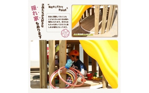- 木製 すべり台 防腐加工済 国産材 環境配慮 外遊び 屋外 アスレチック 遊具 公園 庭 ウッドウォームズ 奈良県 下北山村
