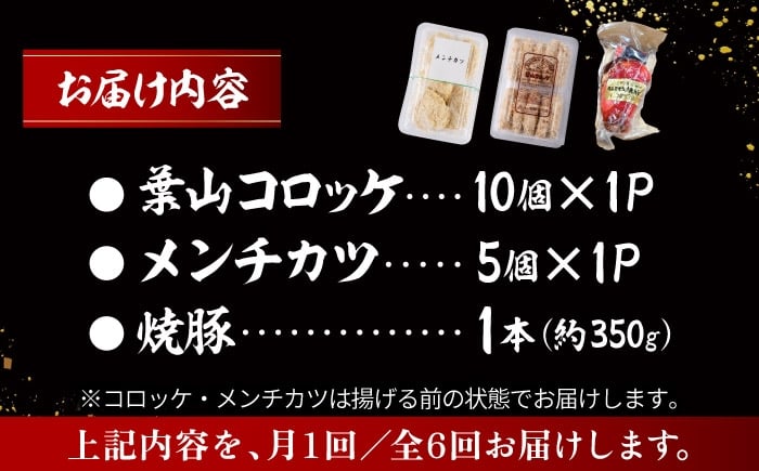 【全6回定期便】お惣菜セット(コロッケ×10個、メンチ×5個、焼豚×1本)/ 葉山町 コロッケ メンチカツ 焼豚 揚げ物 冷凍 小分け おやつ おかず 惣菜 老舗 ころっけ【有限会社葉山旭屋牛肉店】 [ASAP083]
