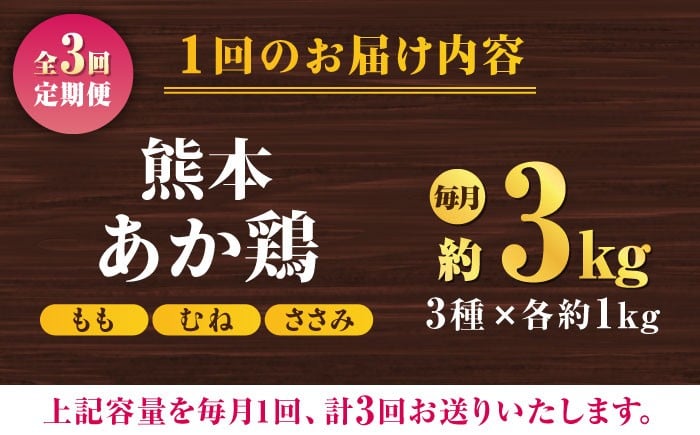 - 【3回定期便】熊本あか鶏 3種食べ比べセット(もも むね ささみ)各1kg【やまうちフード株式会社 熊本営業所】 熊本県 特産品 九州産 チキン [ZAB015]