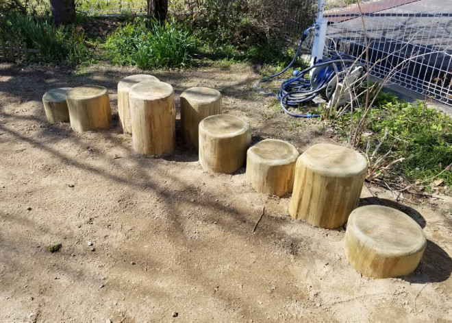 - 木製 丸太ステップ階段(80cm) 防腐加工済 国産材 環境配慮 外遊び 屋外 アスレチック 遊具 公園 庭 ウッドウォームズ 奈良県 下北山村