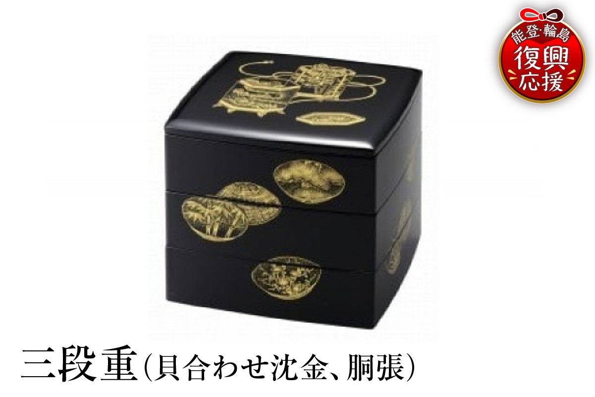 - 輪島塗 三段重(貝合わせ沈金、胴張)