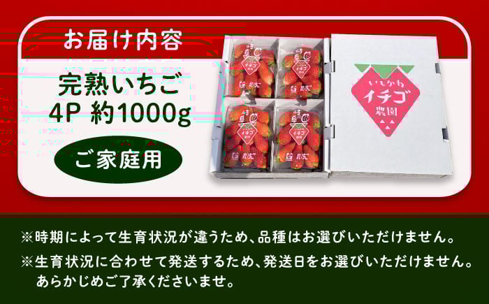 【先行予約】【2026年1月上旬から2026年3月上旬に順次発送】苺 石川農園 完熟いちご 4パック入り(ご家庭用)/ いちご イチゴ 苺 完熟 完熟苺 完熟いちご あまえくぼ 紅ほっぺ 章姫 朝採れ 新鮮 甘い ストロベリー 果物 おまかせ 産地直送 岐阜県産 恵那市産 家庭用 おすすめ 人気 季節限定 冬 旬 フルーツ 岐阜県 / 恵那市 / クリエイティブファーマーズ [AUAH020]