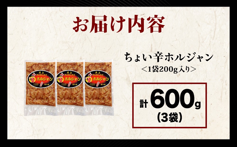 【久上 工藤商店】木古内町『熟味焼肉 久上』のチョイ辛 ホルジャン 200g 3袋