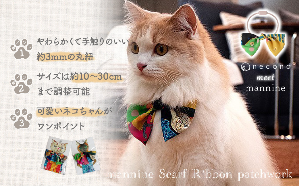 【選べるカラー】 necono <mannine Scarf Ribbon patchwork> ネコちゃん用ネックレス | 埼玉県 上尾市 首輪 猫の首輪 猫用首輪 ペット用品 ペットグッズ ペット用ベッド おしゃれ かわいい 猫用品 かわいい 猫 ネコ ねこ つけ心地抜群 ねこちゃん ペット用 ネコ用 手作り オーダーメイド CAT cat ハンドメイド 手編み