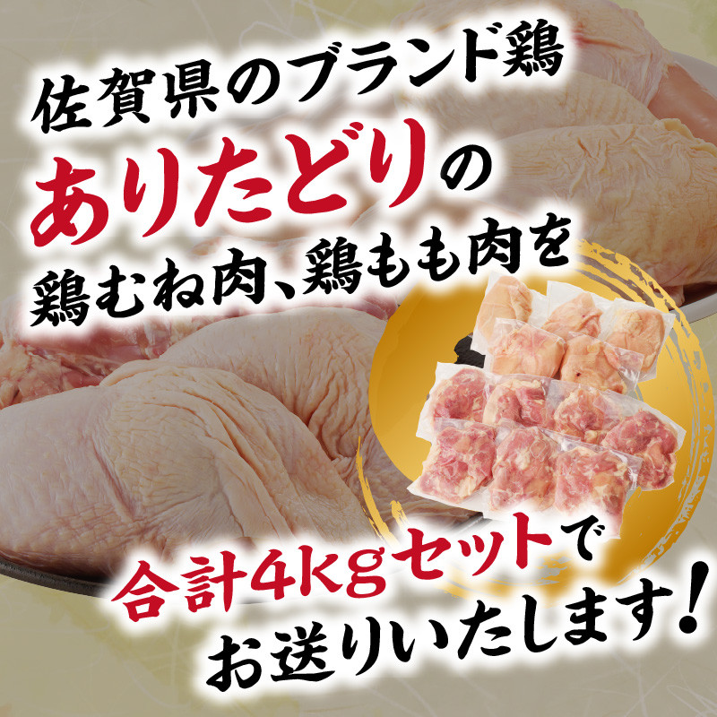 丸福 ありたどり 合計4kg (鶏もも肉 約2kg) (鶏むね肉 約2kg)セット / ブランド鶏 鶏肉 もも肉 むね肉 ヘルシー ジューシー