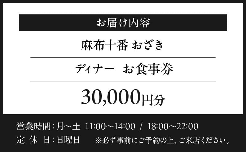 【麻布十番 おざき】《ディナー》30,000円分お食事券(ぐるなびセレクション)
