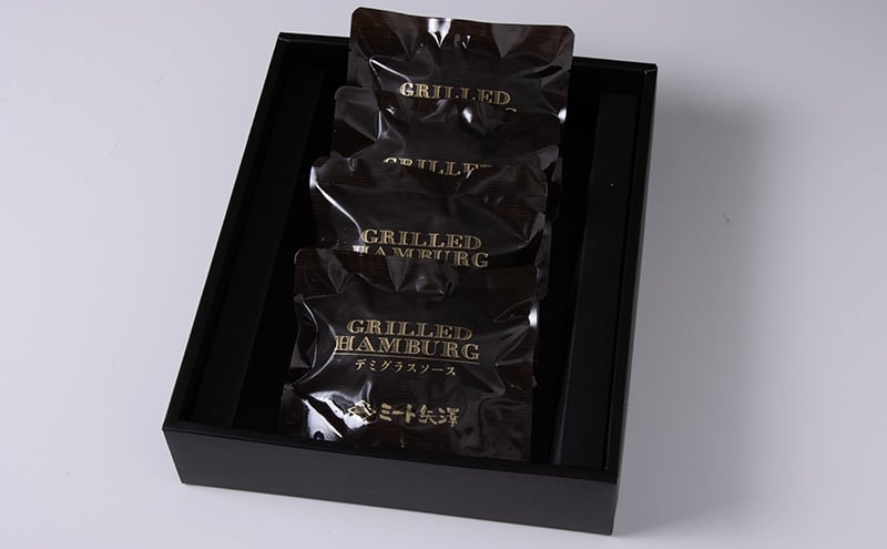 - ハンバーグ ミート矢澤 黒毛和牛100% グリルドハンバーグ デミグラスソース4食セット デミグラスハンバーグ 黒毛和牛 肉々しい ジューシー 旨み マイルド 大田区 東京都