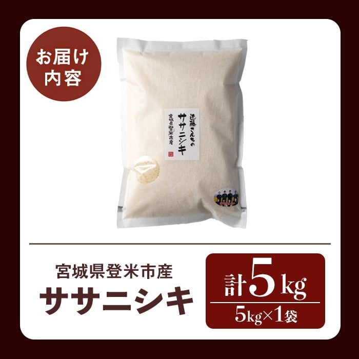 ≪令和7年産≫ ササニシキ 精米 5kg×1袋 宮城県登米市産 お米 おこめ 米 コメ 白米 ご飯 ごはん おにぎり お弁当【株式会社近藤農産】tm508