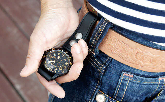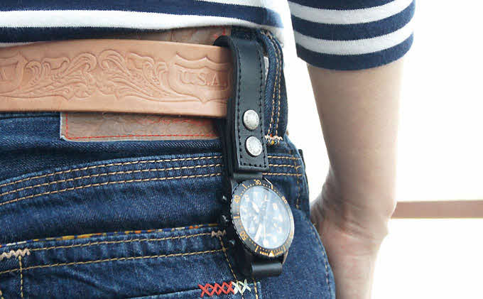 ぬめ革の時計ホルダー/Type-B(幅:20mm)腕時計 レザー ホルダー 吊り下げ ブラック キャメル バンナイズ VanNuys