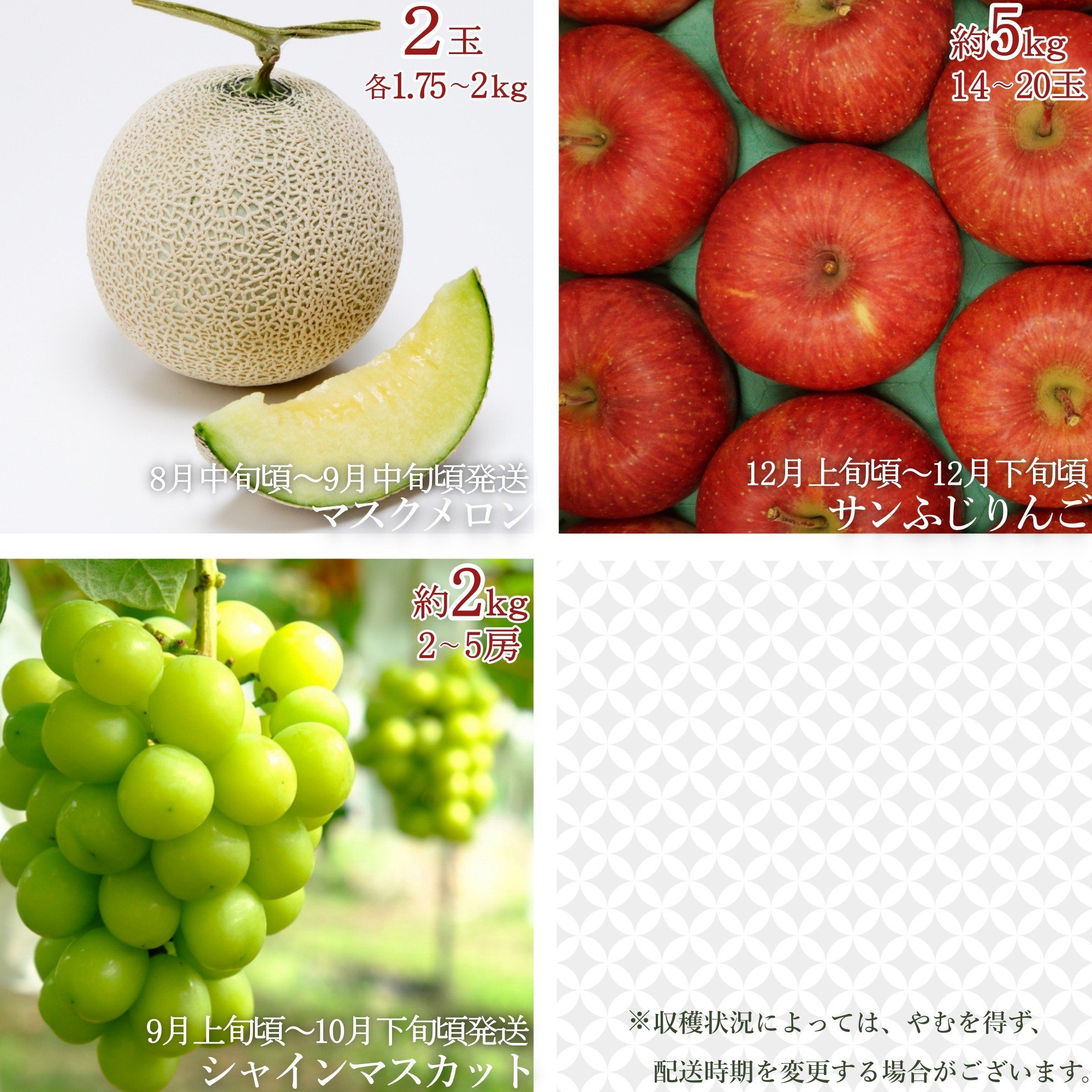 【2026年発送】【定期便3回】山形旬の果物3選(メロン/シャインマスカット/りんご)_H158(R8)