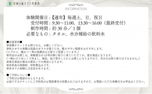 - ウランガラスの吹きガラス体験 1名様or2名様